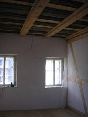 Sichtbares Fachwerk und Deckengebälk
